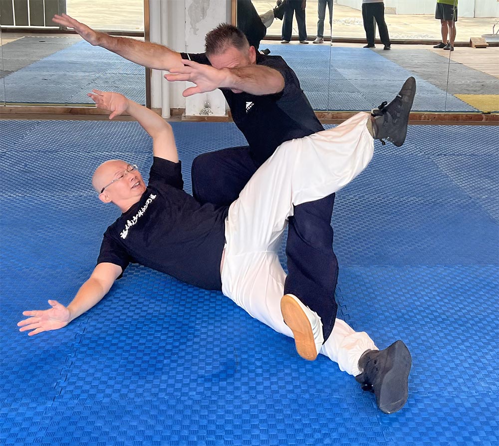 A great morning of training today, mostly working on binding and finishing an opponent quickly alongside a few patterns. We also had a couple of young children Dog Boxers, who loved playing some ground games. Master Lin at 81 years young, took me down, applying the golden scissors method whilst creating more pain than anyone else. In the warm up, he joined in doing the butterfly legs. Truly amazing when not many 81 year olds can even get on and off the floor.